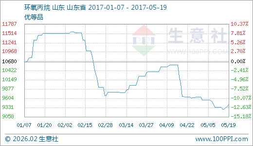 根据生意社价格监测,本周环氧丙烷报盘上涨,目前环氧丙烷内贸市场主流报盘价格在9285元/吨左右,和周初相比上涨了1.51%。
