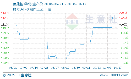 2018年10月17日氟化工价格涨跌榜中上涨的商品共0种,下跌的商品共0种,涨跌为0的商品共5种。平稳的产品包括氟化铝、萤石、三氯甲烷、氢氟酸和冰晶石。