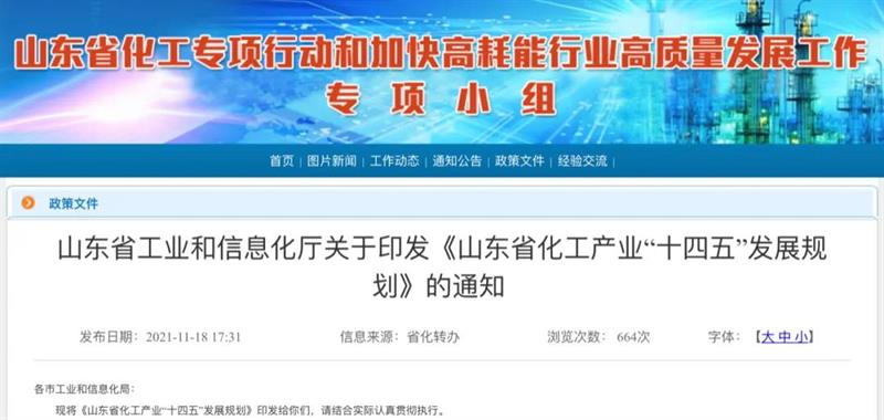 11月18日,山东工信厅印发《山东省化工产业“十四五”发展规划》,提出将重点打造六大基地,壮大产业集群;优化提升石油化工、煤基精细化工、化工新材料等八大行业,延伸产业链条;组织实施五项工程,做强化工园区。