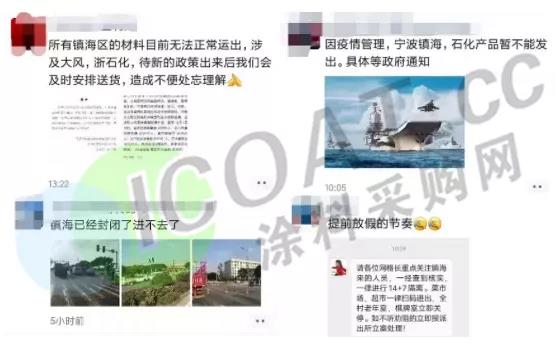 从各大消息平台可以看出,受宁波疫情防控影响,目前所有镇海区的材料均不能发出。位于宁波镇海区的浙铁大风石化、镇海炼化、LG甬兴化工等企业的石化产品运输首先受到冲击,其中部分厂家表态浙石化的产品不能正常运出。