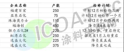 市场人士称,镇海炼化PP装置可能会减产,该企业的乙二醇装置目前仍在运营,但厂区码头已暂停发货;另外,自上周以来宁波德富的PP和MEG装置已按计划进行维护。据涂料采购网了解,化工行业目前开工率整体而言较低,时值年末,停车检修集中进行,限电限产持续蔓延,重污染预警也“火上浇油”,使得化工企业陷入“停限产”深渊之中。最长停产50天,万华、恒力、索普等企业年末密集检修川维化工:乙炔装置一/三单元停车降温,系统停进原料天然气,开启了停车检修模式。四川美丰公告,对四川美丰化肥分公司和复合肥有限责任公司的生产装置进行轮换停车检修,预计到2022年1月中旬结束。凯美特气发布公告,本部计划于2021年11月8日开始进行生产装置例行停车检修,预计停车35天。万华化学公告,全资子公司万华化学(宁波)有限公司的MDI一期装置(40万吨/年)将于2021年11月27日开始停产检修,预计检修45天左右;MDI二期装置(80万吨/年)将于2021年12月11日开始停产检修,预计检修45天左右。江苏索普化工:11月18日开始对醋酸及醋酸乙酯装置停车检修,预计检修及停开车时间为28天左右。恒力石化:2#220万吨装置12月10日开始停车检修;逸盛大化:1#225万吨PTA装置12月2日下午负荷降至5成运行,恢复时间待定;福建百宏:250万吨PTA装置12月1日开始停车检修,检修时长约25天左右;