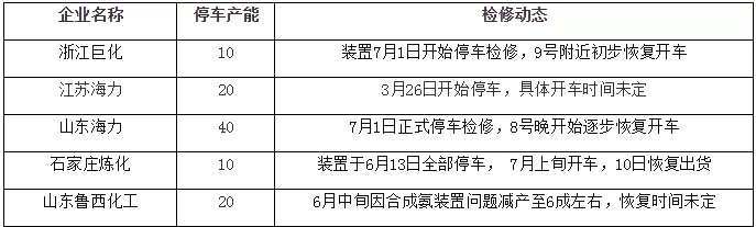 首先看市场供应面,如上表所示,自6月下旬开始,己内酰胺厂家停车检修有所增多,行业整体开工降至6成左右,市场供应收紧,但厂家检修多为短期临时停车,至目前,前期停车装置已逐步恢复,市场供应将逐步增多,势必将对市场形成一定压力。