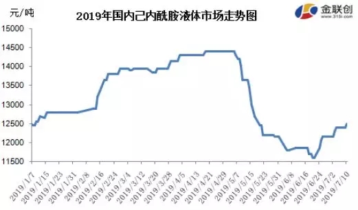 自6月下旬,国内己内酰胺市场跌至新低后,市场开始逐步反弹,华东地区液体市场价格自11500-11700元/吨的低位,至目前逐步涨至12400-12600元/吨。6月下旬市场上涨的主要推动力是国内己内酰胺厂家装置检修增多,市场供应收紧,厂家开始挺价出货,且下游趁低采购有所增多,助推市场逐步上涨。随着利好的逐步消化,6月底市场逐步趋于平稳。7月初开始,随着中美贸易战缓和,市场信心得以提振,上游纯苯市场逐步走高,成本支撑增强。下游锦纶切片市场反弹,聚合装置开工小幅提升,对己内酰胺需求量有所增多,诸多利好推动下,己内酰胺商家报盘坚挺,3日,中石化挂牌价上调300元/吨至12300元/吨,助推市场价格。但市场缺乏持续推动力,市场拉涨幅度受限。目前己内酰胺市场处于相对胶着状态,后市走势将如何?