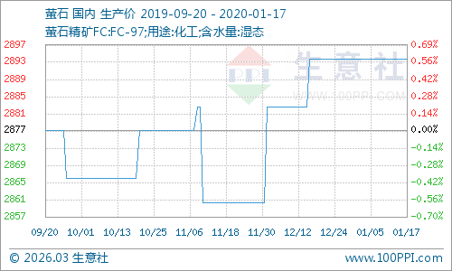 后市来看,近期国内萤石厂家装置开工一般,下游氢氟酸行业市场价格维持稳定,加之下游制冷行业行情变化不大,生意社萤石分析师陈玲认为萤石价格后期或将维持稳定,价格或将在2900元/吨左右。