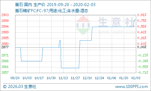 由萤石价格走势图清晰看出萤石价格走势上涨,据统计截止2月3日国内萤石均价为2900元/吨,国内萤石价格走势小幅上涨,据统计近期国内内蒙古地区97萤石湿粉价格在2800-3000元/吨,福建地区97萤石湿粉商谈主流在2800-3100元/吨,河南地区97萤石湿粉价格在2800-3100元/吨,江西地区97萤石湿粉价格在2900-3100元/吨。