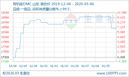 根据生意社监测数据显示,截止上周末(3月6日),数据监测的几个主流地区有机硅DMC市场报价均价为18533元/吨,与上月末(2月29日)相比,下幅下降467元/吨左右,下降幅度2.46%。