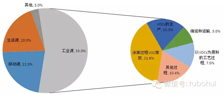 表面涂装VOCs排放量及影响表面涂装VOCs排放量:据相关科研单位估算,表面涂装排放占工业源的21.6%,占人为源的12%